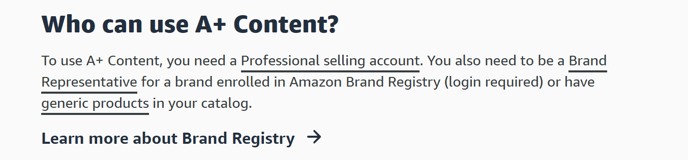 Only brand-registered sellers on Amazon are eligible to use A+ Content. This feature is also accessible to Amazon Vendors and third-party agencies managing accounts on behalf of brands. If you haven’t registered your brand on Amazon yet, doing so unlocks not just A+ Content but also access to other valuable tools like Amazon Brand Analytics and the Brand Dashboard.