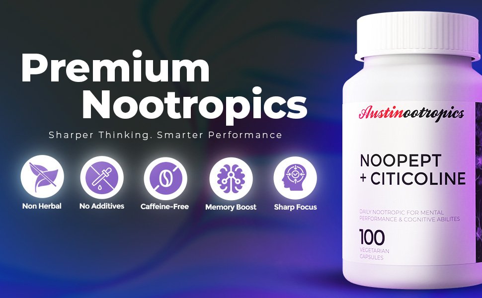[Austinootropics] Noopept + Citicoline 30mg/150mg – Caffeine Free Nootropic Stack Brain Health Supplement for Focus, Memory and Cognitive Support – [Number of] Capsules
