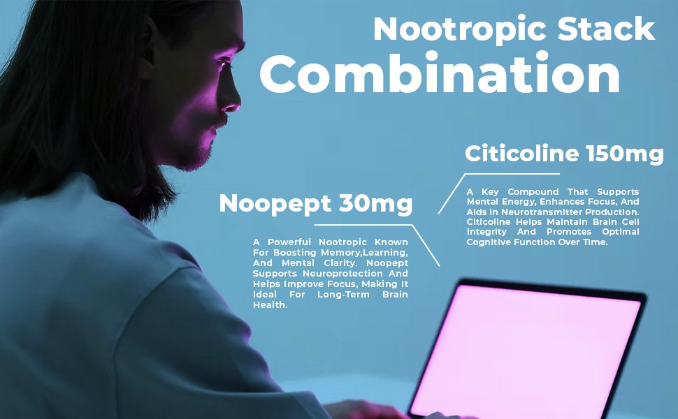 • POWERFUL NOOTROPIC STACK – Our advanced brain supplement combines 30mg of Noopept and 150mg of Citicoline to promote sharper thinking, better memory, and mental clarity.